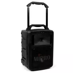 Cet enceinte portative sur batterie ou secteur 200 watts peut être en RENFORT de la même enceinte mipro. Le son se transmet en système de HF.